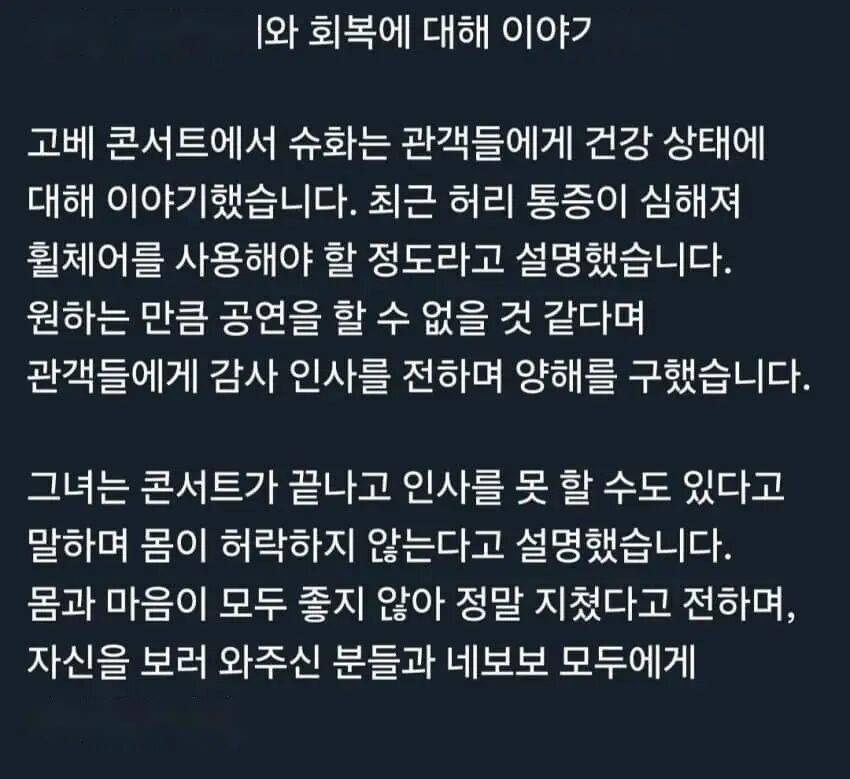 在一片担忧声中,所有人的心声前所未有地一致:“健康第一,别再考虑节食了”、“只求她平安健康ㅠㅠ舒华千万别生病...”、“愿大家都保持健康无病无痛”。还有评论一针见血地指出:“可能是因行程繁忙过度劳累ㅜㅜ椎间盘突出甚至会导致瘫痪,绝不能掉以轻心。”